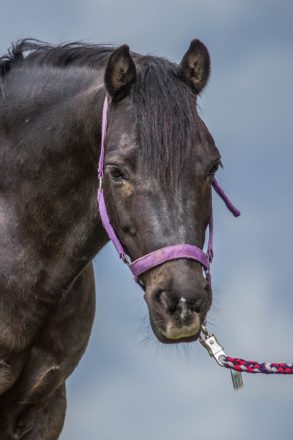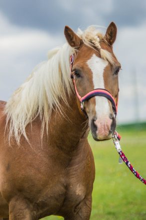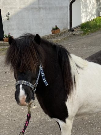 Coffi je vyšší pony kobylka, křížená PRE s fell pony. Ráda povozí zkušenější děti, miluje kavaletovou práci a skákání. Je vhodná i pro začínající jezdce, které důsledně naučí správnému vedení koně 🙂
